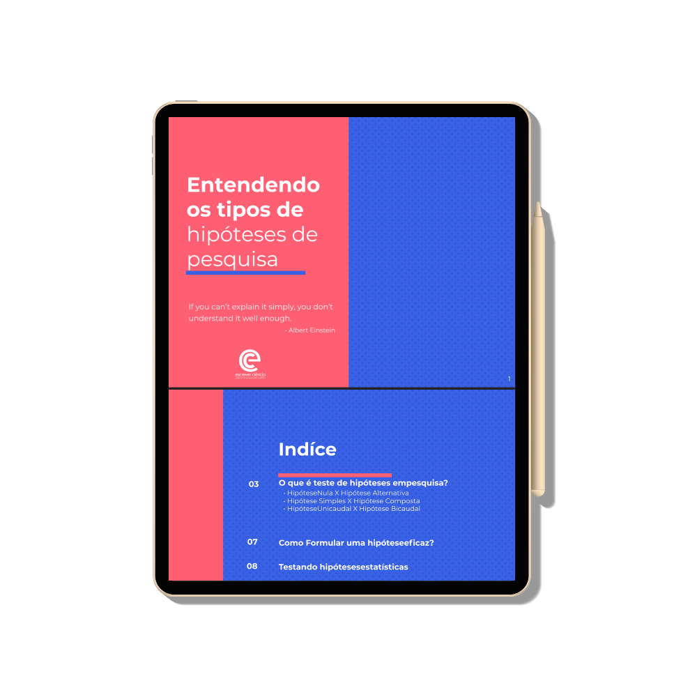 No e-book, você encontrará uma explicação detalhada E COM EXEMPLOS sobre a diferença entre hipótese nula e hipótese alternativa. Você aprenderá como formular e testar sua hipótese de pesquisa de forma eficaz.